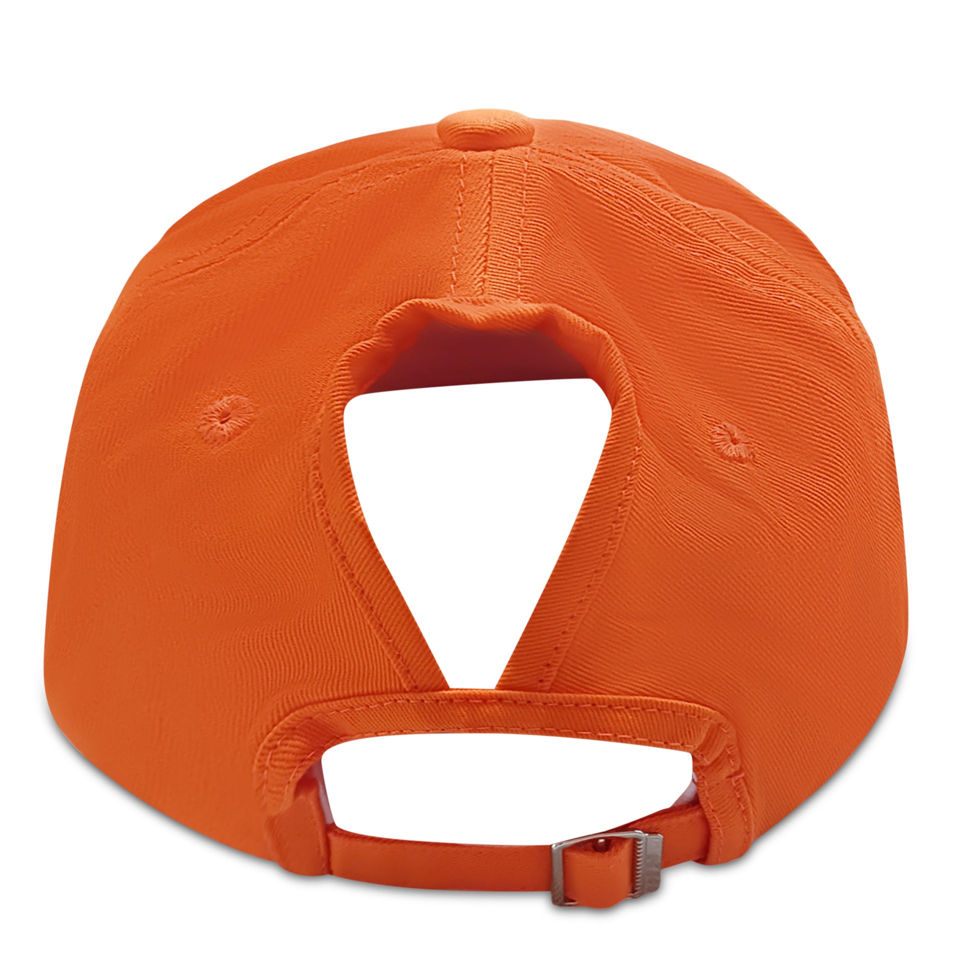 Stay cool and comfortable with the All About Her® Embroidered Ponytail Baseball Cap. Featuring a high ponytail/messy bun slot, breathable fabric, and an adjustable strapback fit, this cap is ideal for outdoor activities, travel, and casual wear. Available in Black, White, Beige, Maroon, and Orange.
