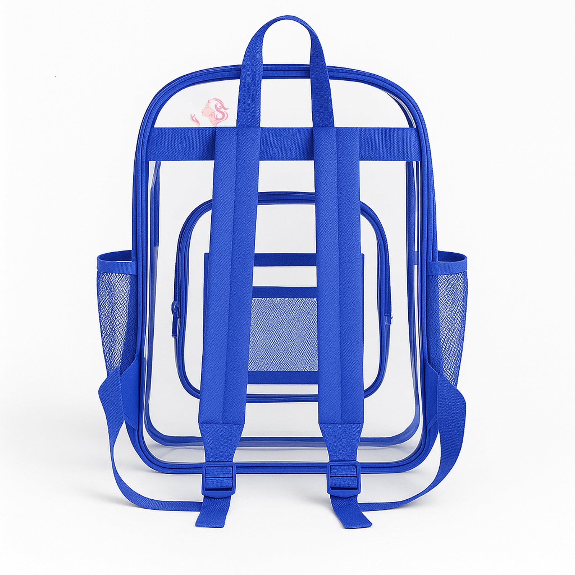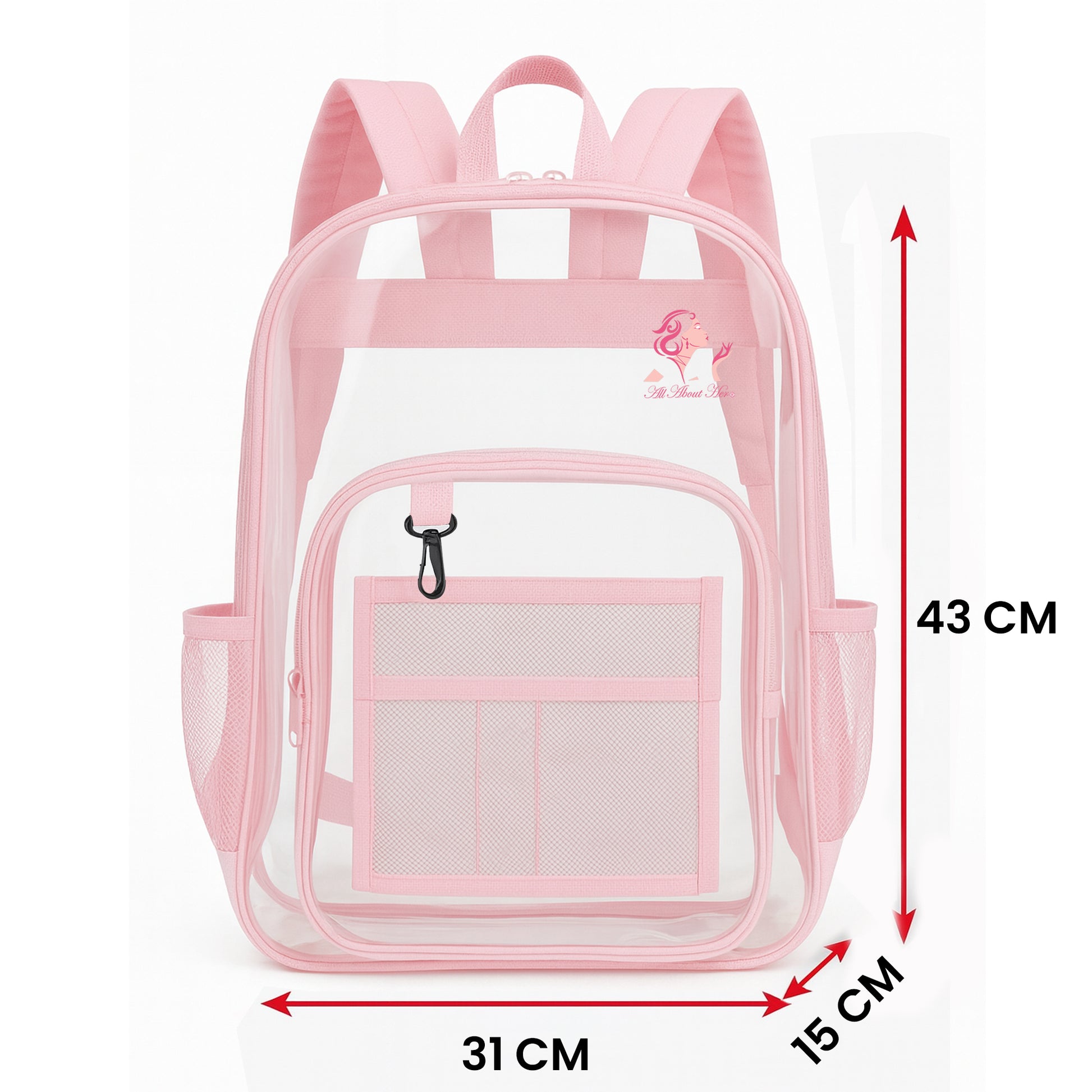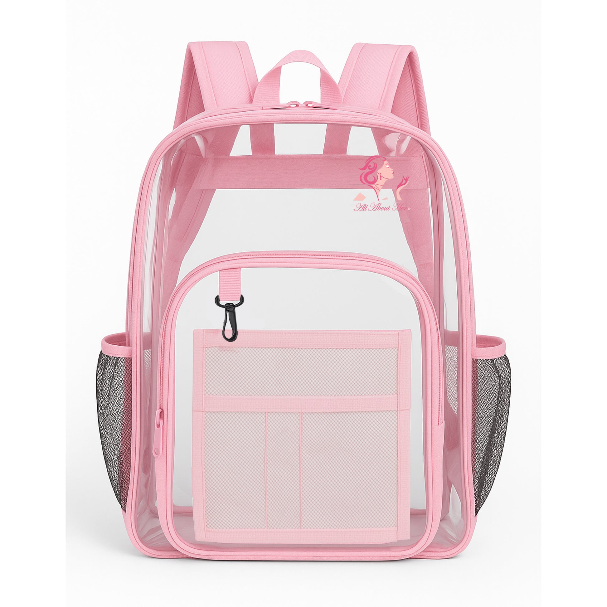 - See-Through Backpack: Quickly slip through airports, school gates, and stadiums with our clear backpack. In addition to its funky style, which is right on trend, our transparent bags offer ample space and organizational compartments to help you sort out your valuables.